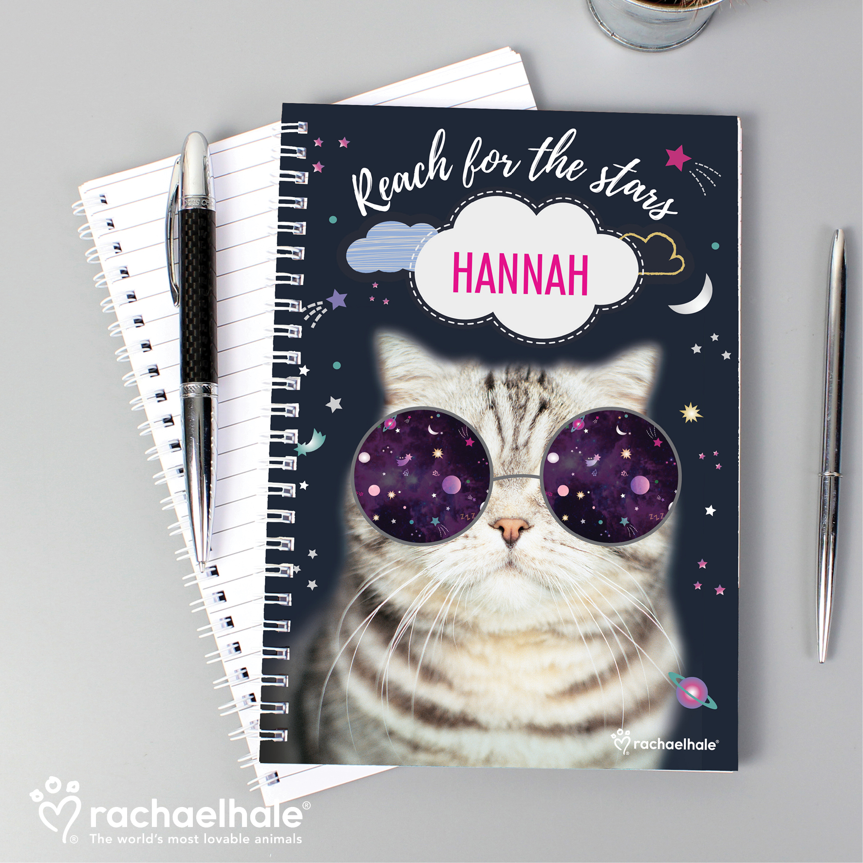- Please note the personalisation is fixed upper case. “Reach for the stars” is fixed text” All notebooks contain 40 double sided lined pages Ideal as a stocking filler or a Secret Santa gift Ideal for Birthday’s, back to school.