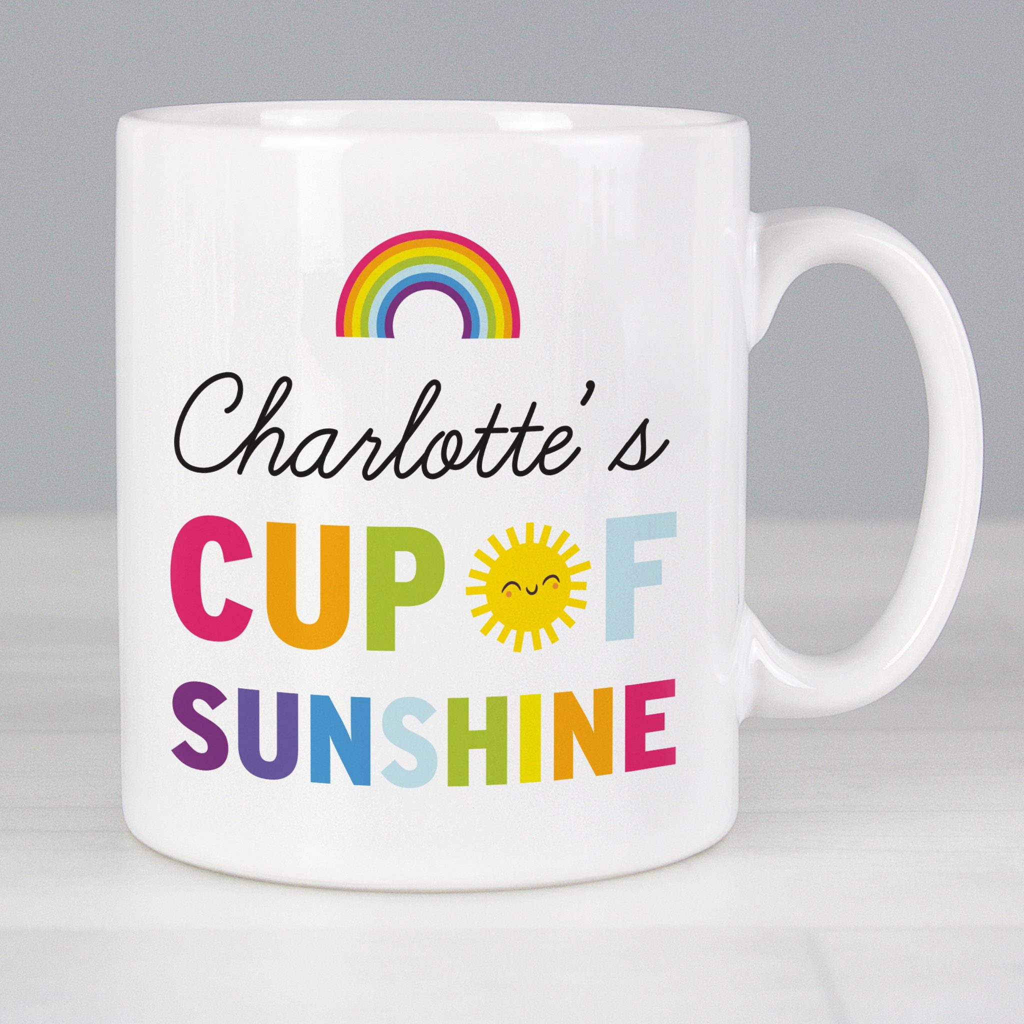 - This mug can be personalised with the following: On front (Name/role) – up to 12 characters long Cup of Sunshine is fixed text and cannot be changed.