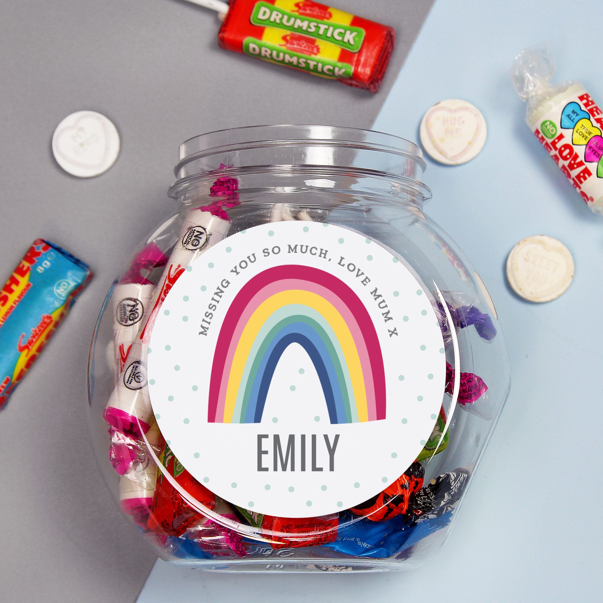 - Styled with a sweet rainbow design the label of this sweet jar can be personalised with your own special message.