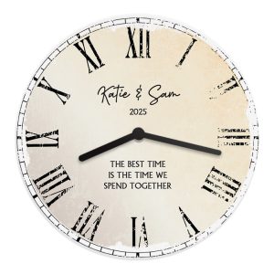 - The clock has a rustic wood effect finish and is made from lightweight white wood board.
