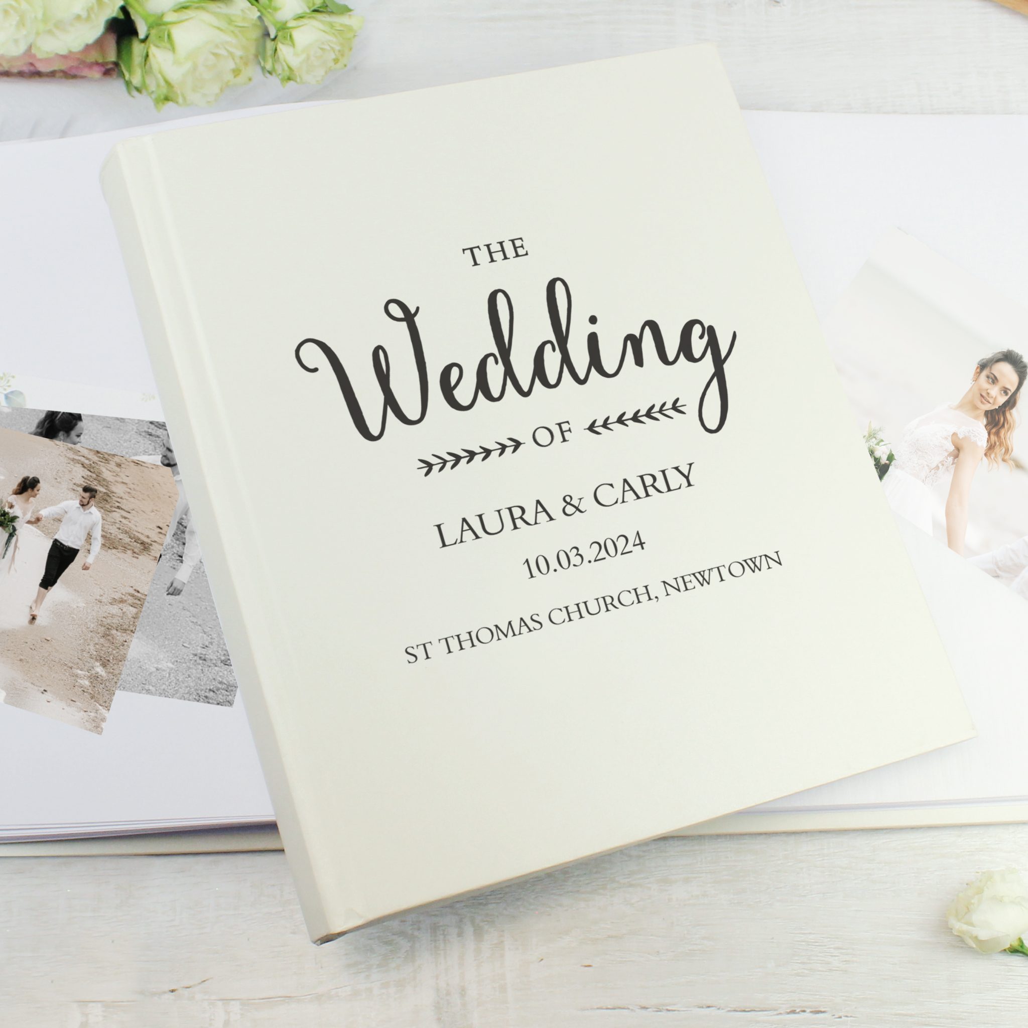 - This album can be personalised with 2 names / message up to 25 characters, a date / message up to 25 characters and a location/venue/message up to 25 characters.