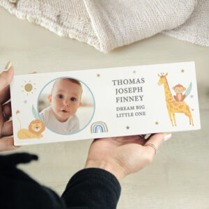 This gorgeous Personalised Safari Animals Photo Upload Wooden Ornament is a fantastic way of welcoming a little one into the world.