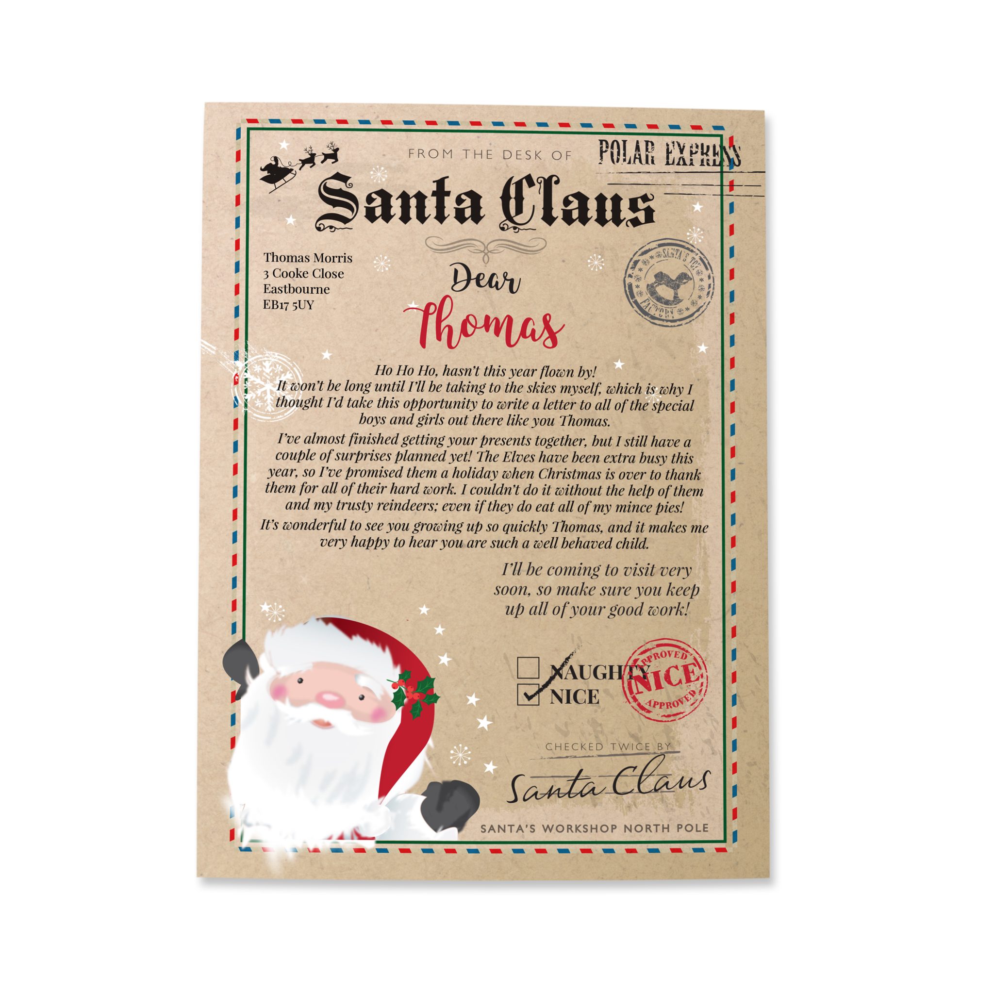 - This can be personalised with a first name of up to 15 characters, which will also appear within the body of the letter.