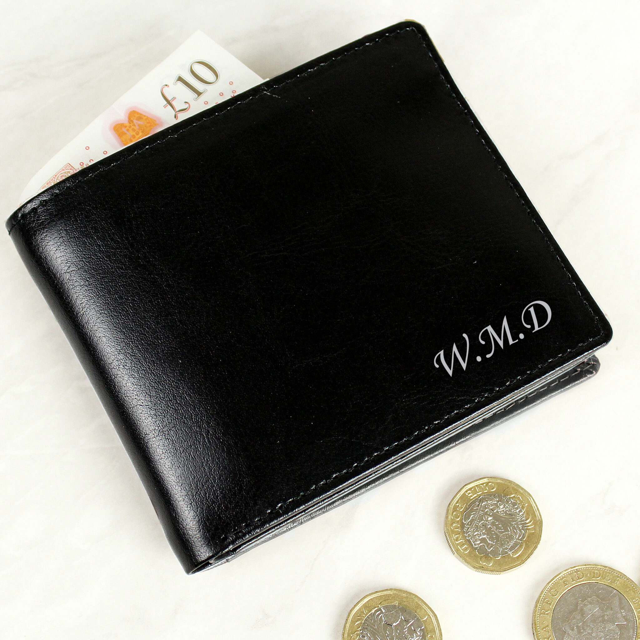 Personalise this leather wallet with any name or initials up to 15 characters.