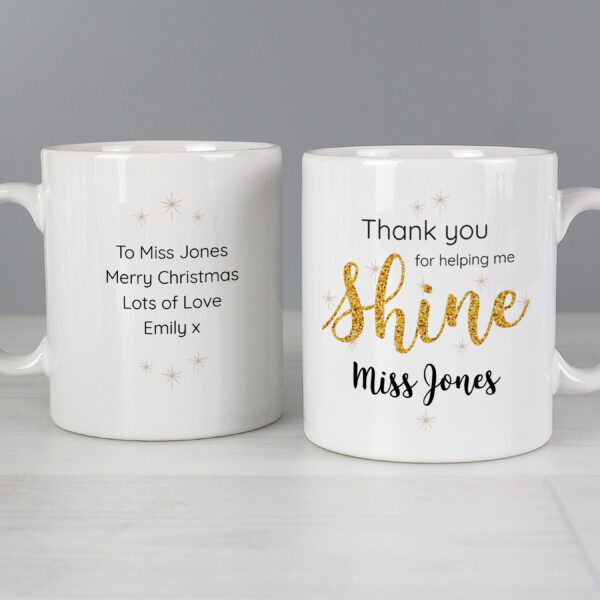 This Thank you for helping me shine Teachers Mug is an ideal present for any teacher.