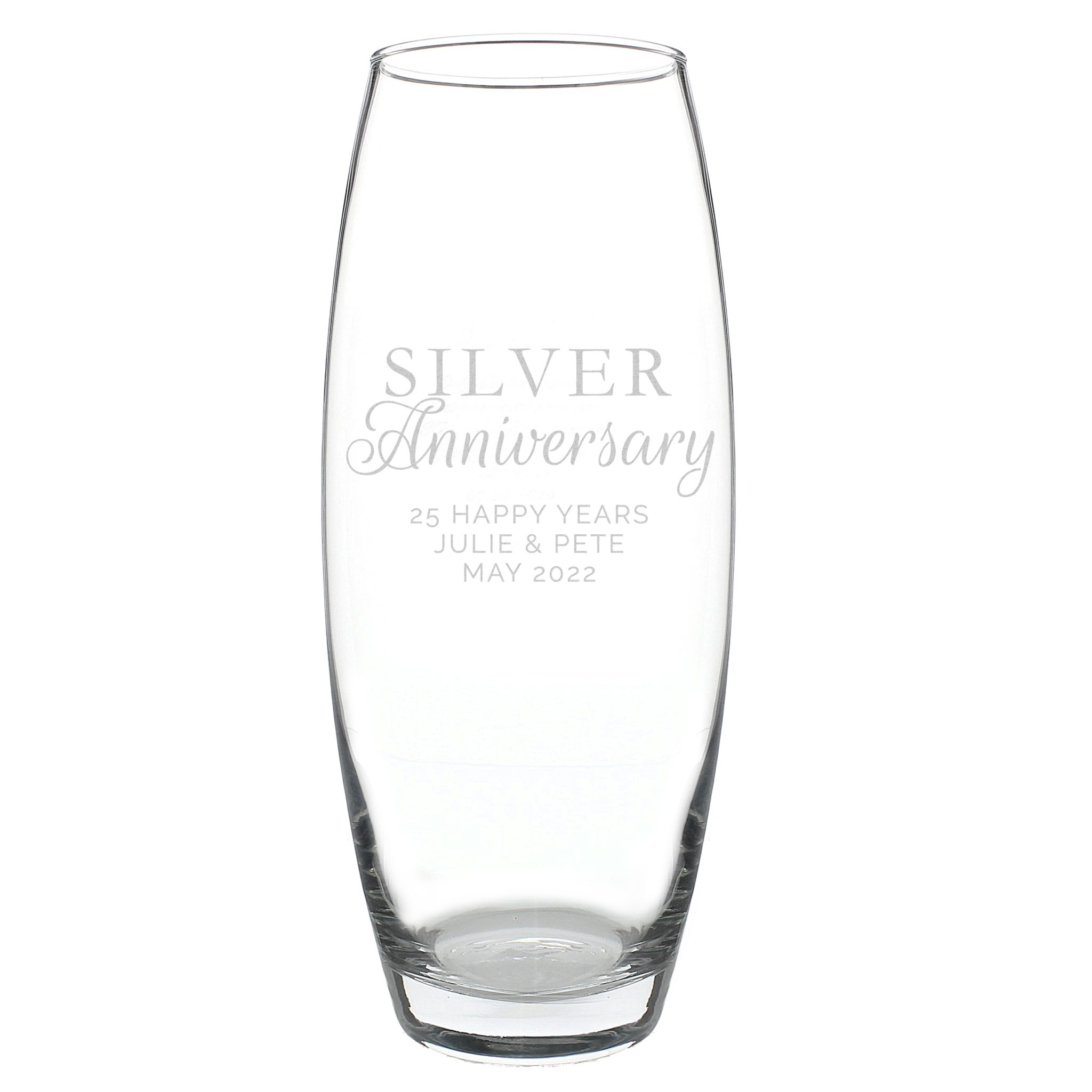 - All personalisation will automatically appear in UPPERCASE. “Silver Anniversary” is fixed text and cannot be changed.