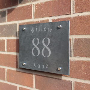 - Personalise this sign with a house/flat number of up to 3 digits and 2 lines of text of up to 20 characters each.