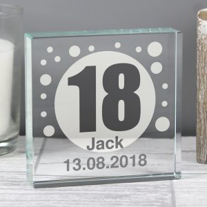 Personalise this Spots Age Crystal Block design with any age and message over 2 lines up to 15 characters per line.
