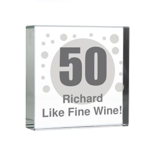 Personalise this Spots Age Crystal Block design with any age and message over 2 lines up to 15 characters per line.