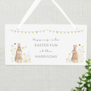 Add a touch of charm to your spring celebrations with our Personalised Spring Bunny Wooden Sign Crafted from wood, this decoration features an adorable spring bunny design that will brighten any space.