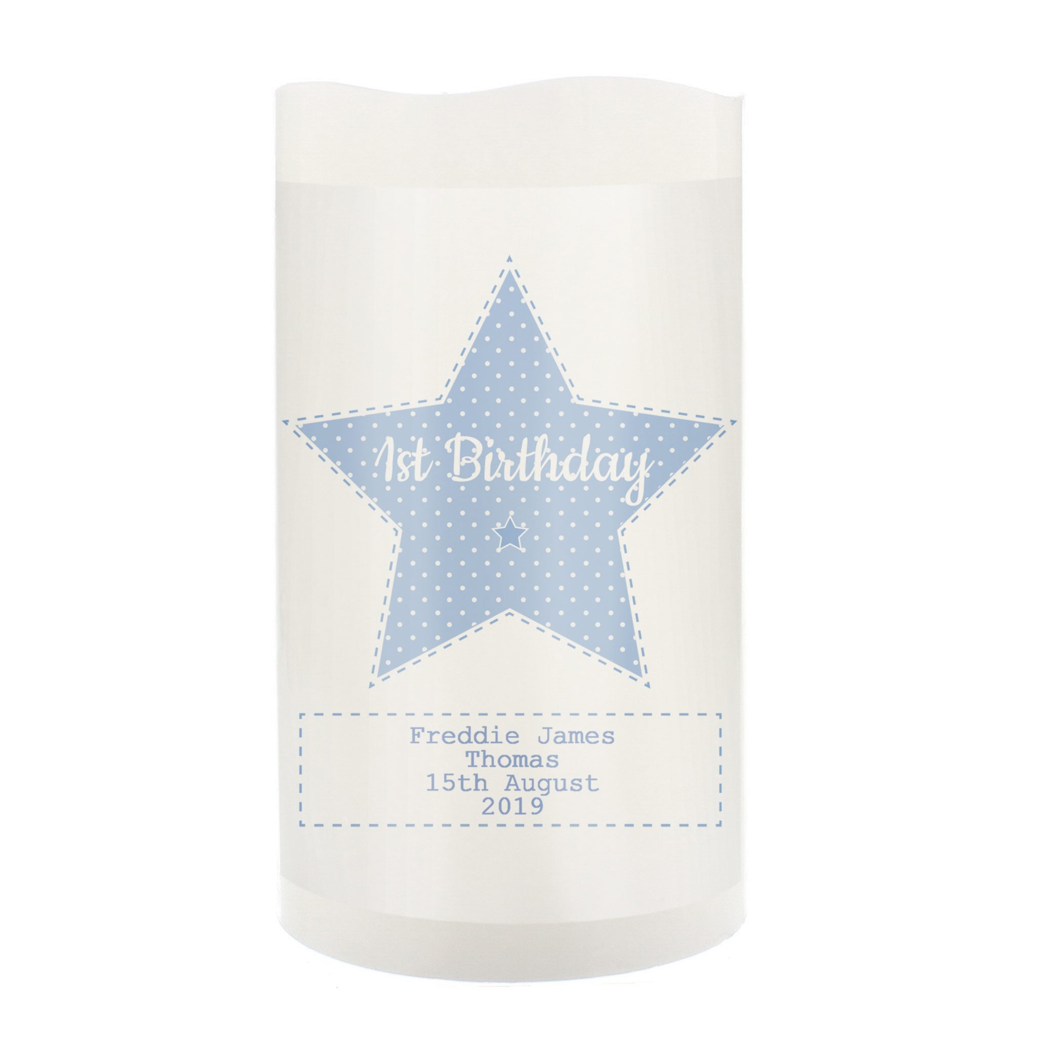 Personalised Stitch & Dot Baby Boy Nightlight LED Candle