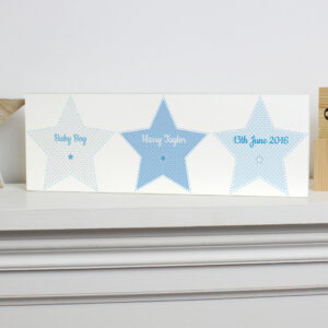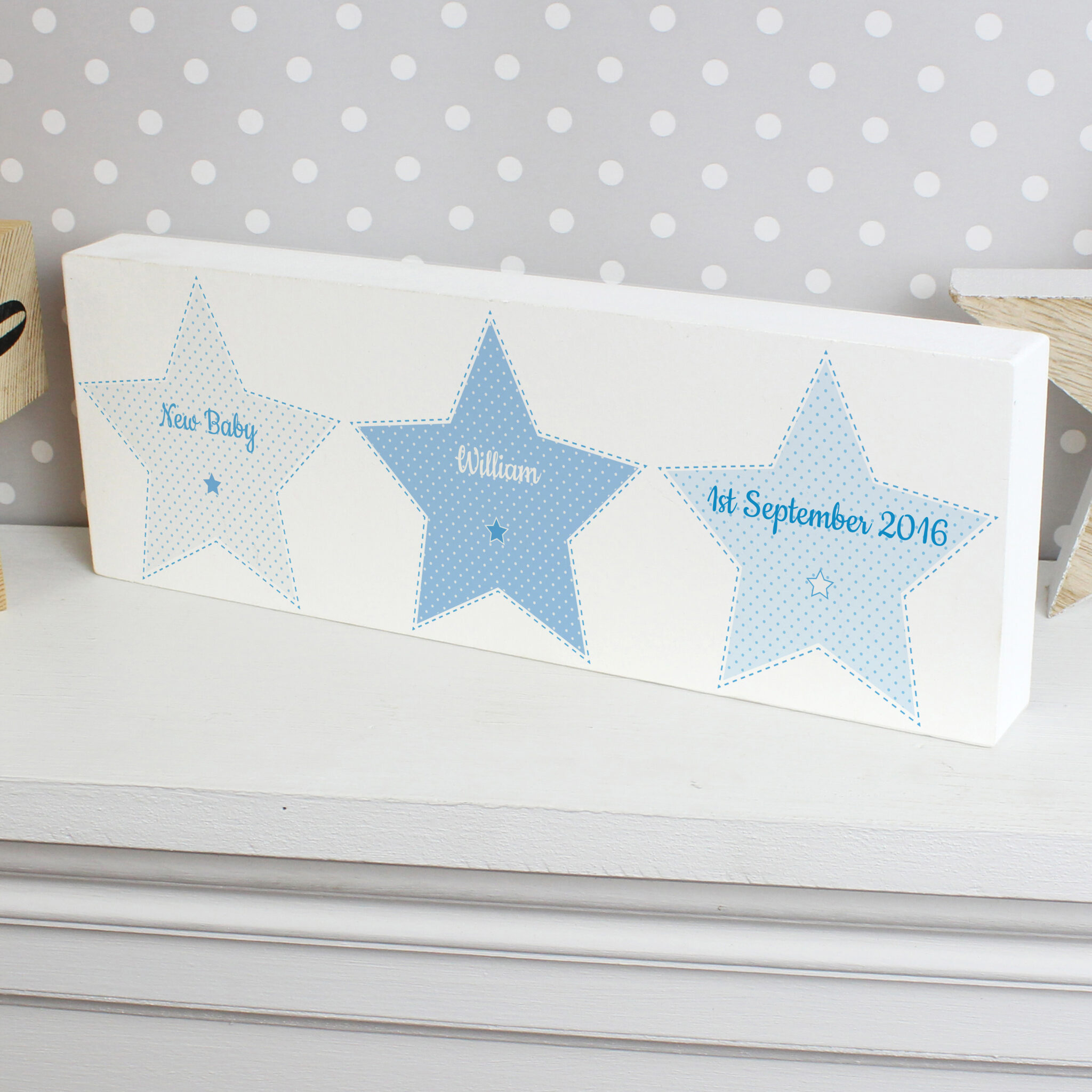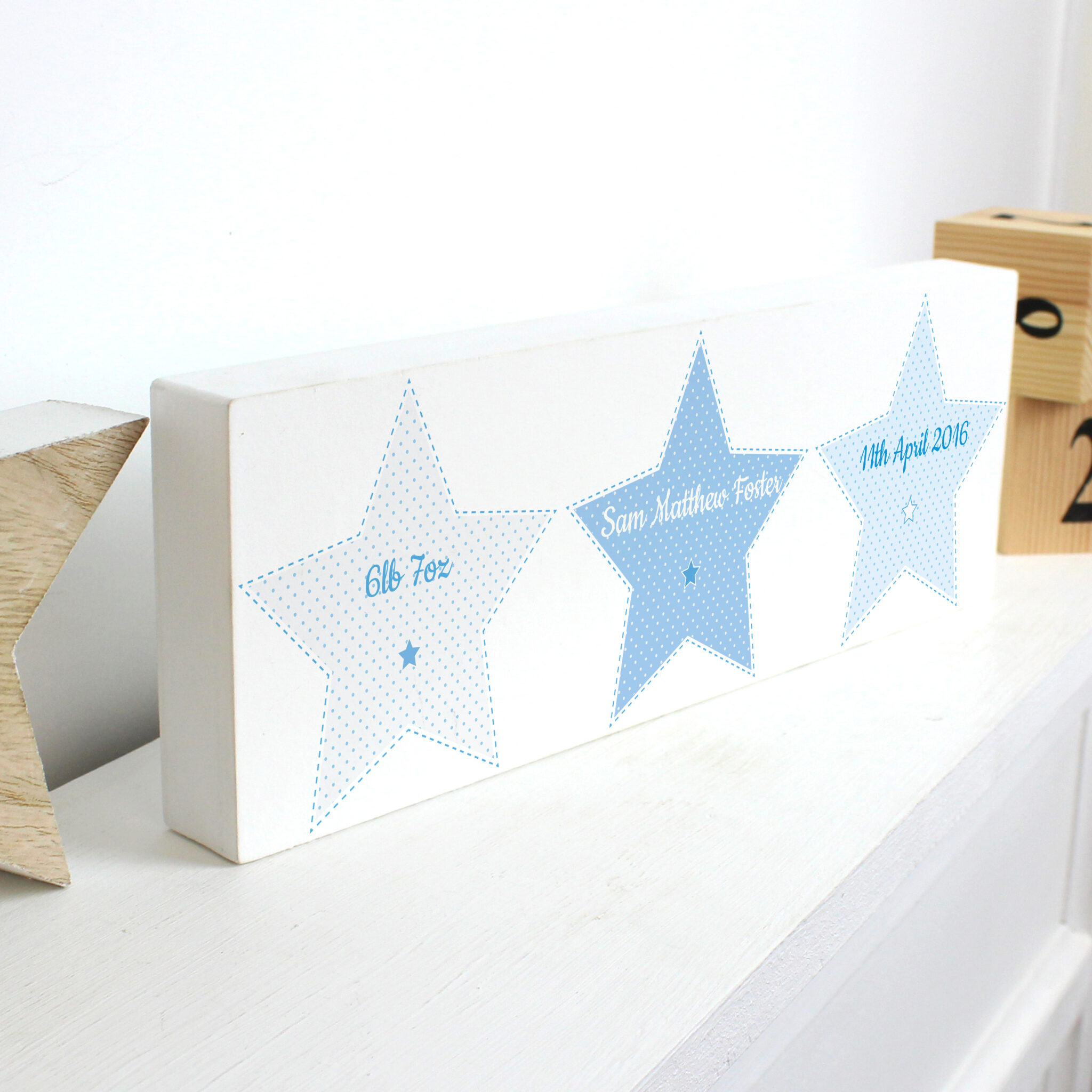 Personalised Stitch & Dot Baby Boy Wooden Block Sign