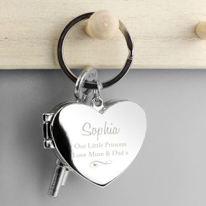 - Personalise this silver finish Heart Shaped Photo Keyring with any name up to 12 characters and any message over 2 lines, with 20 characters per line.