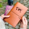 - The personalised toiletry bag for men comes in a light brown or black leather look material with a textured finish.