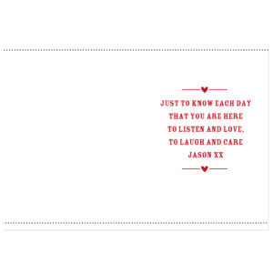 Personalise this Teddy Heart card with any name in the heart, up to 12 characters and a message on the inside over 5 lines, up to 20 characters per line.