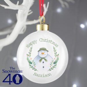 This Personalised The Snowman Winter Garden Bauble will look great on any Christmas tree!