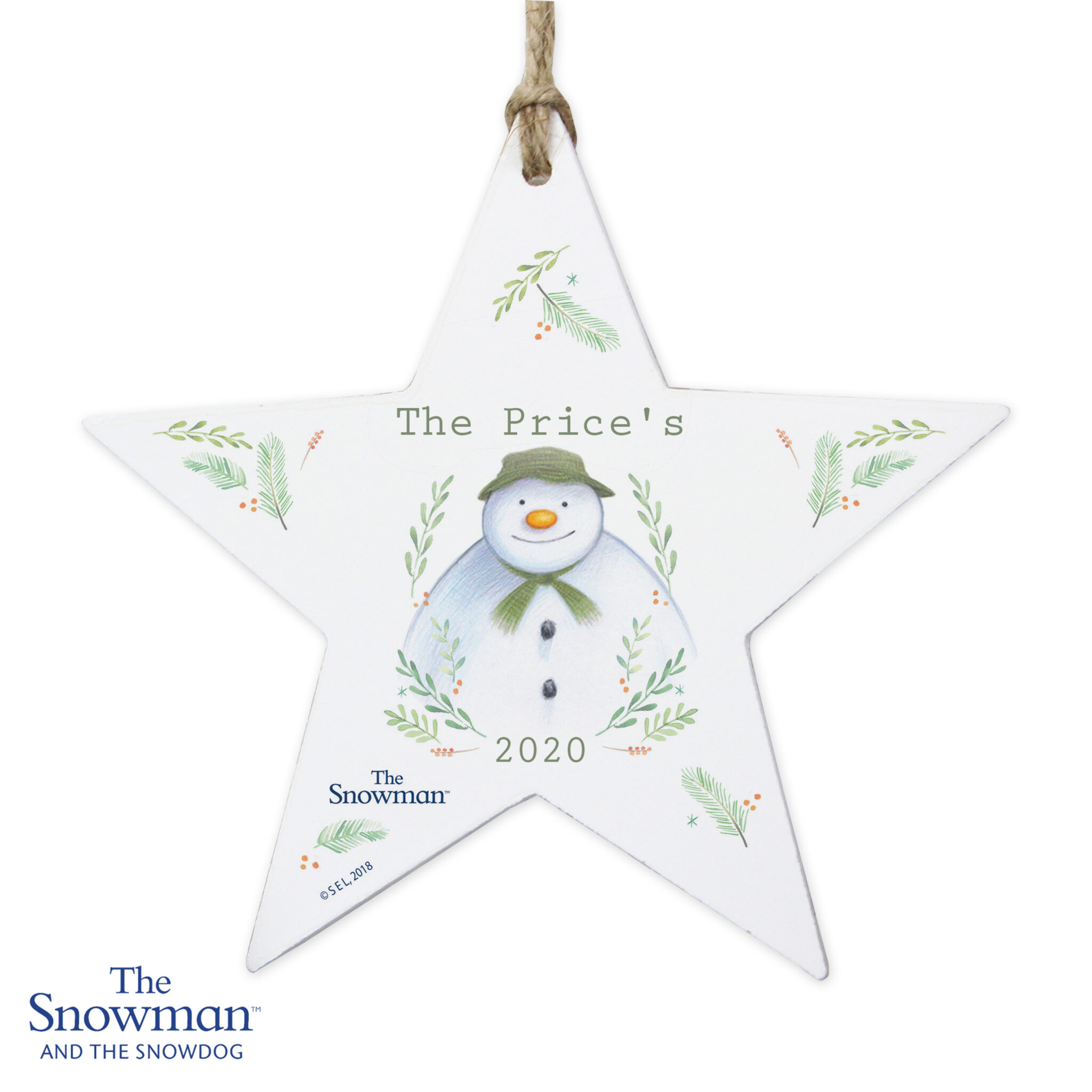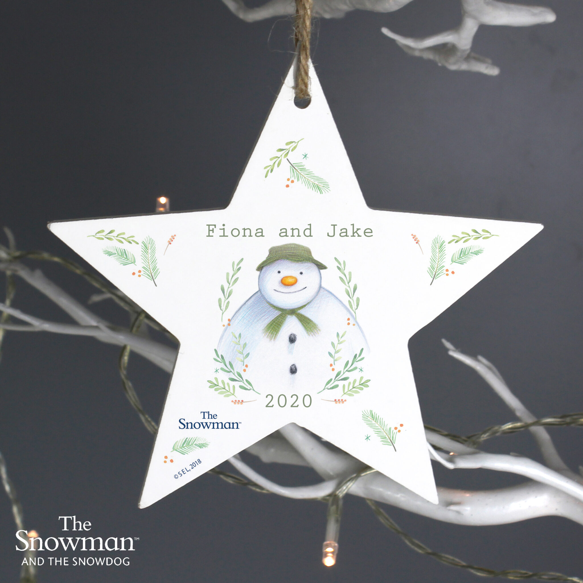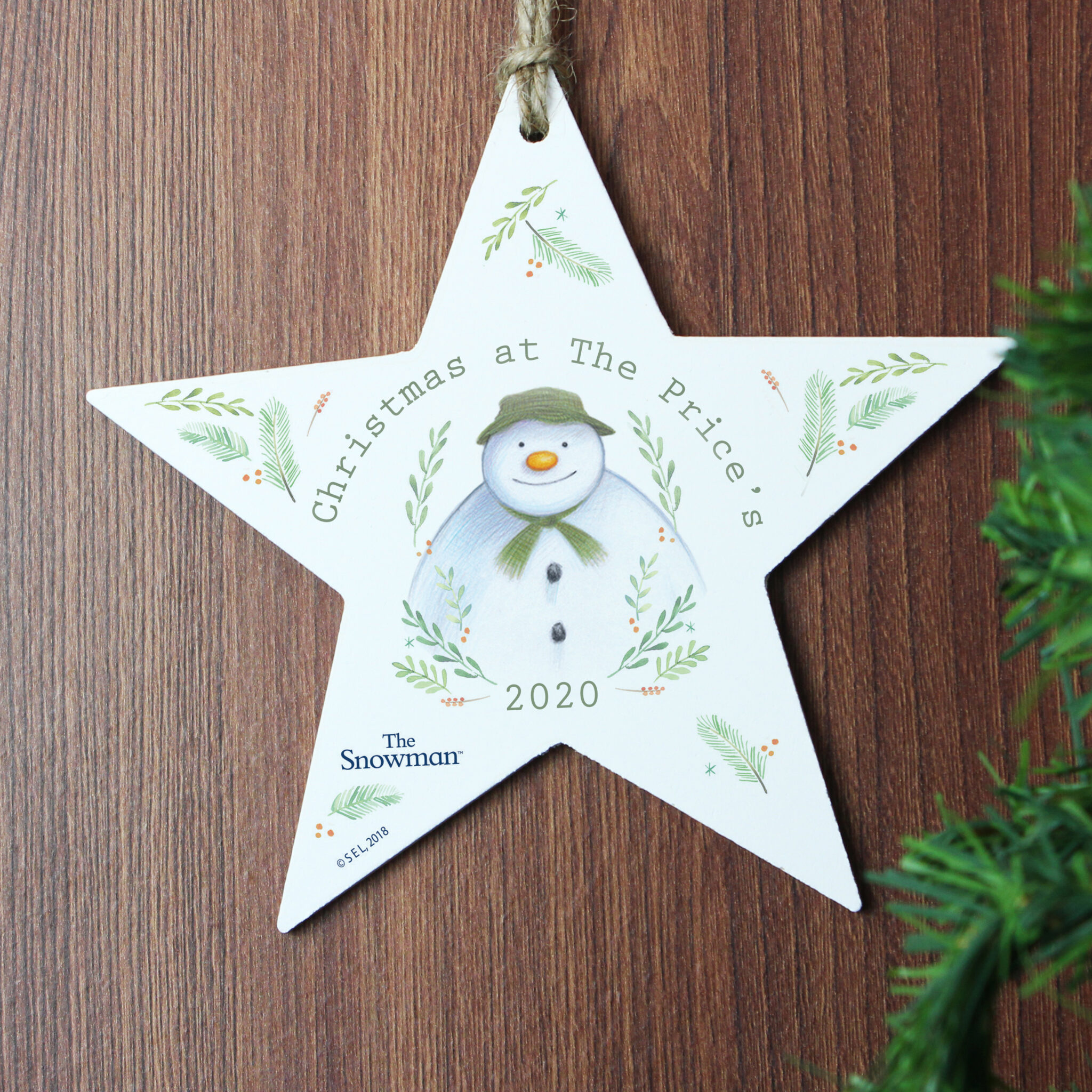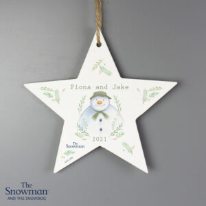 This Personalised The Snowman Winter Garden Wooden Star Decoration makes a wonderfully festive addition to any Christmas tree.