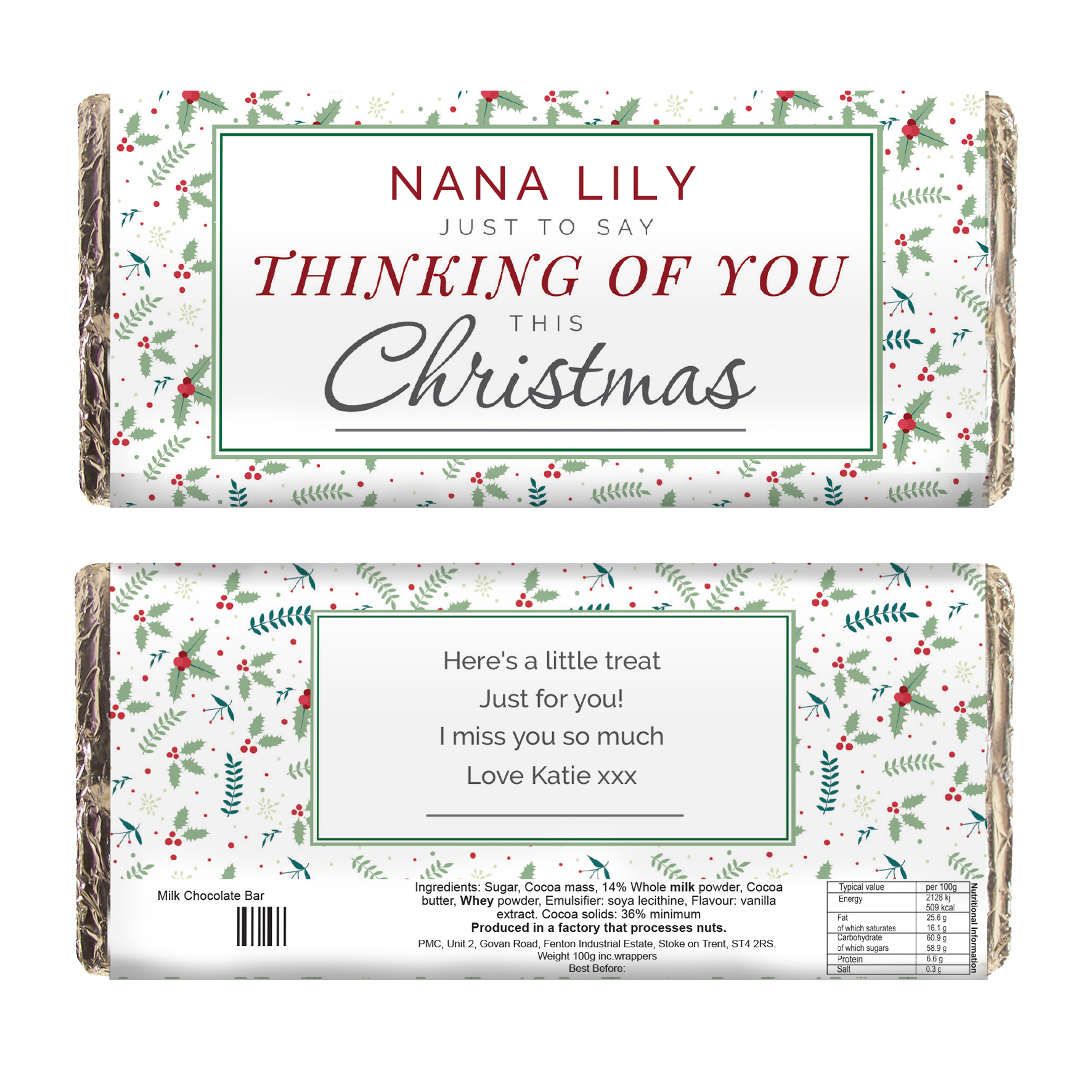 Be the first to review “Personalised Thinking of You Christmas Milk Chocolate Bar” Cancel reply
