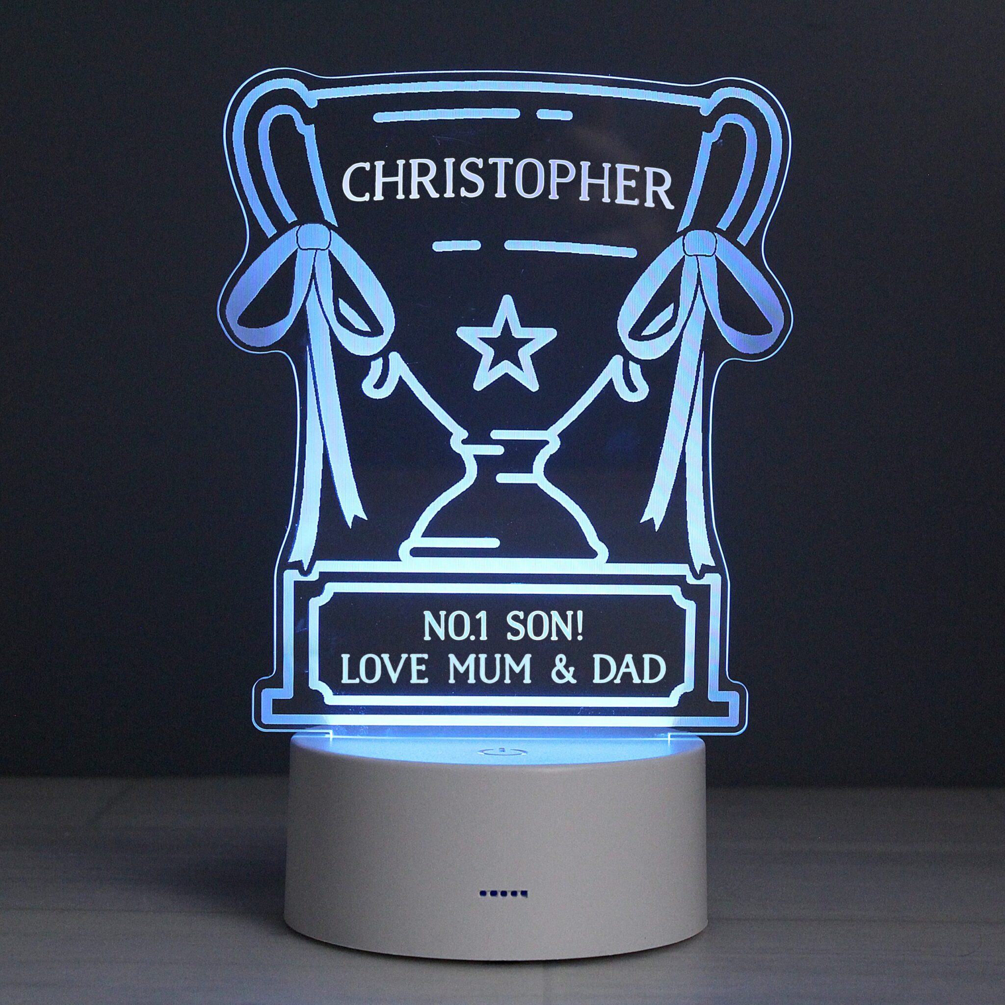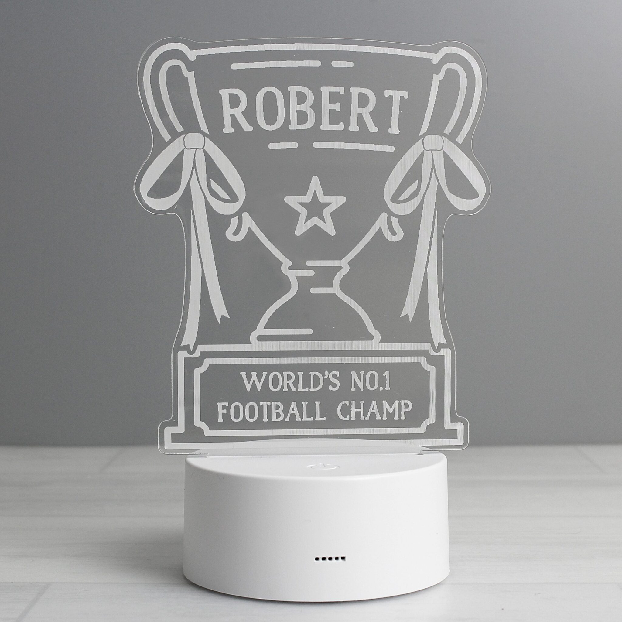 This Personalised Trophy LED Colour Changing Night Light is a perfect gift.