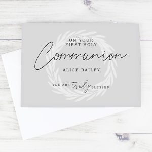 - The name on the front will appear in fixed uppercase. “On Your First Holy Communion” & “You are truly blessed” is fixed text.