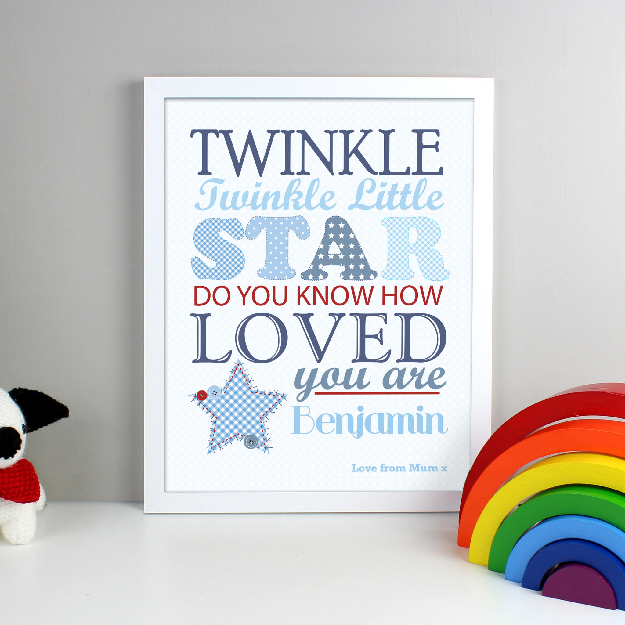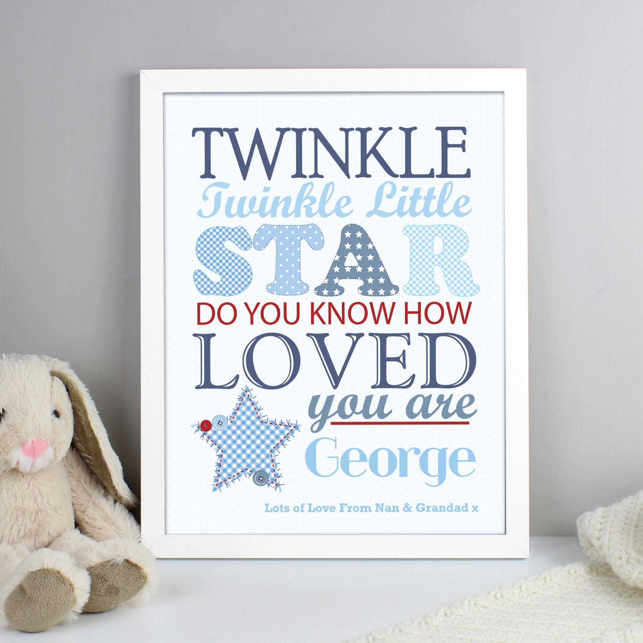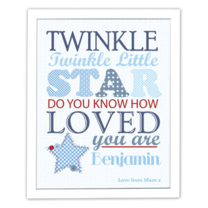 Personalise this Twinkle Boys White framed print a name up to 12 characters a line of message up to 40 characters.