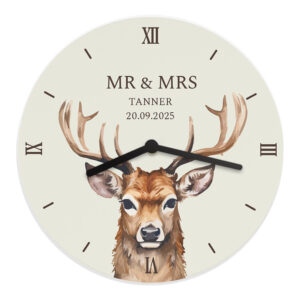 Personalised Watercolour Stag Wooden Clock