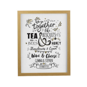 - Personalise this framed print with two names that will fit up to 20 characters and a message up to 20 characters in length (which will appear inside the banner at the bottom).