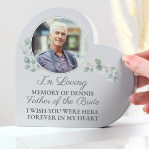 This personalised memorial heart ornament is a touching way to honour, and include a beloved family member who is unable to be present for the special occasion.