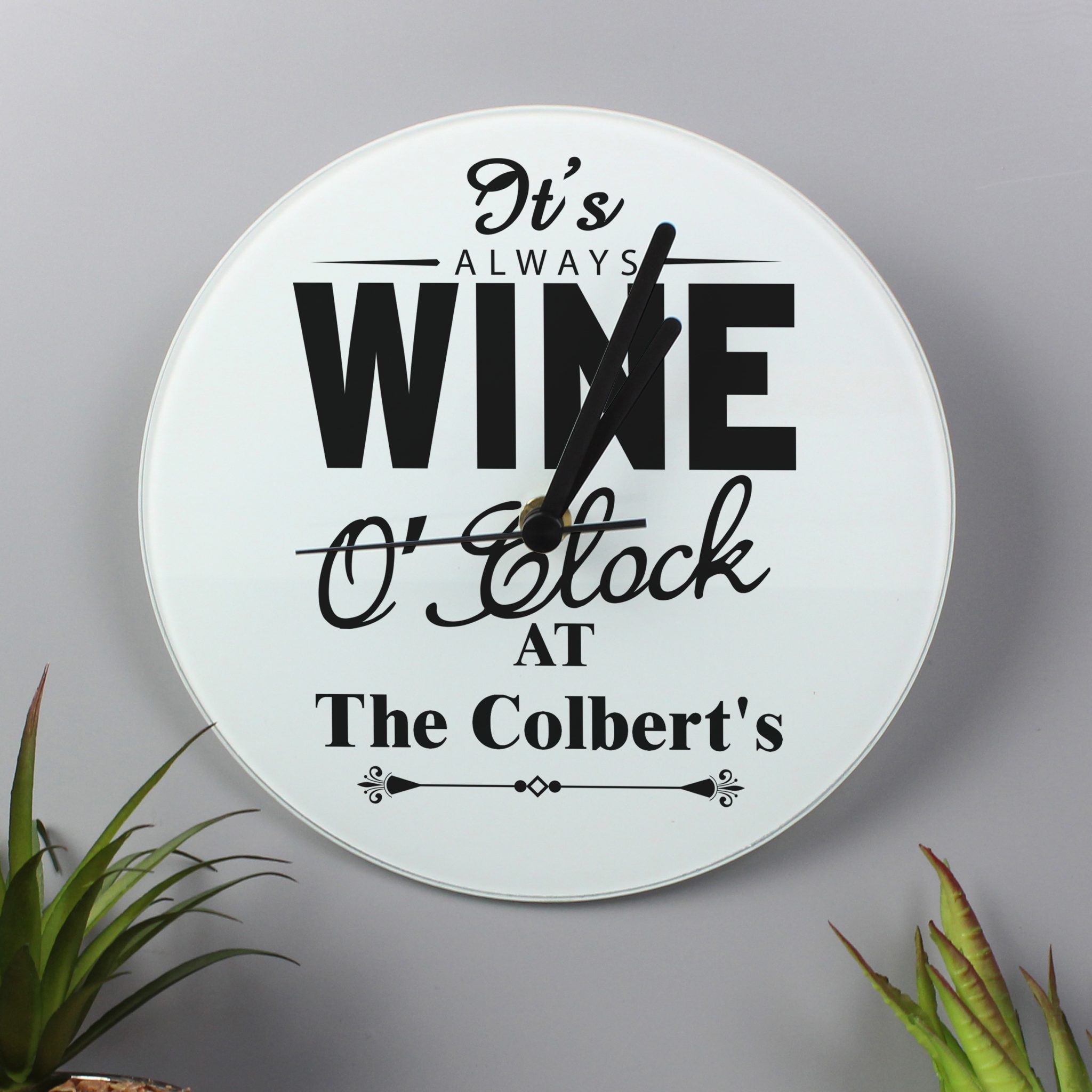 - The words ”It’s ALWAYS WINE O’Clock AT” are fixed The personalisation will appear in UPPERCASE The name will be personalised as entered.