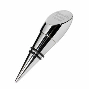 This contemporary silver plated wine stopper can be personalised with any message over 3 lines and up to 10 characters per line.