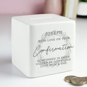 - Personalise this money box with up to 6 lines of text, as below Message Line 1 – 15 Characters