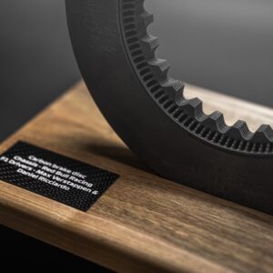 The disc cooling system may have up to 1000 air holes. It is made of carbon fibre and the process of production of each disc comprises of many cycles of compression and baking the structure, what takes in total several months. A single disc made in that way weighs about a kilogram whereas a disc made of standard materials (cast iron) weighs a few kilograms.