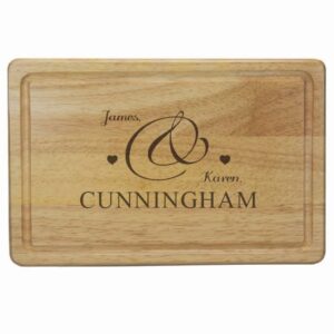 Made from quality beech wood, this shaped chopping board would be the perfect gift for a new couple. Whether its a house warming gift, or you know they love to cook, this board is an ideal addition to their kitchen. Lovingly engraved with both their names.