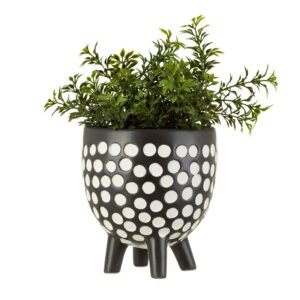 The sleek black design of this indoor plant pot features a repeat pattern of white dots, alongside four rather cute standing legs.