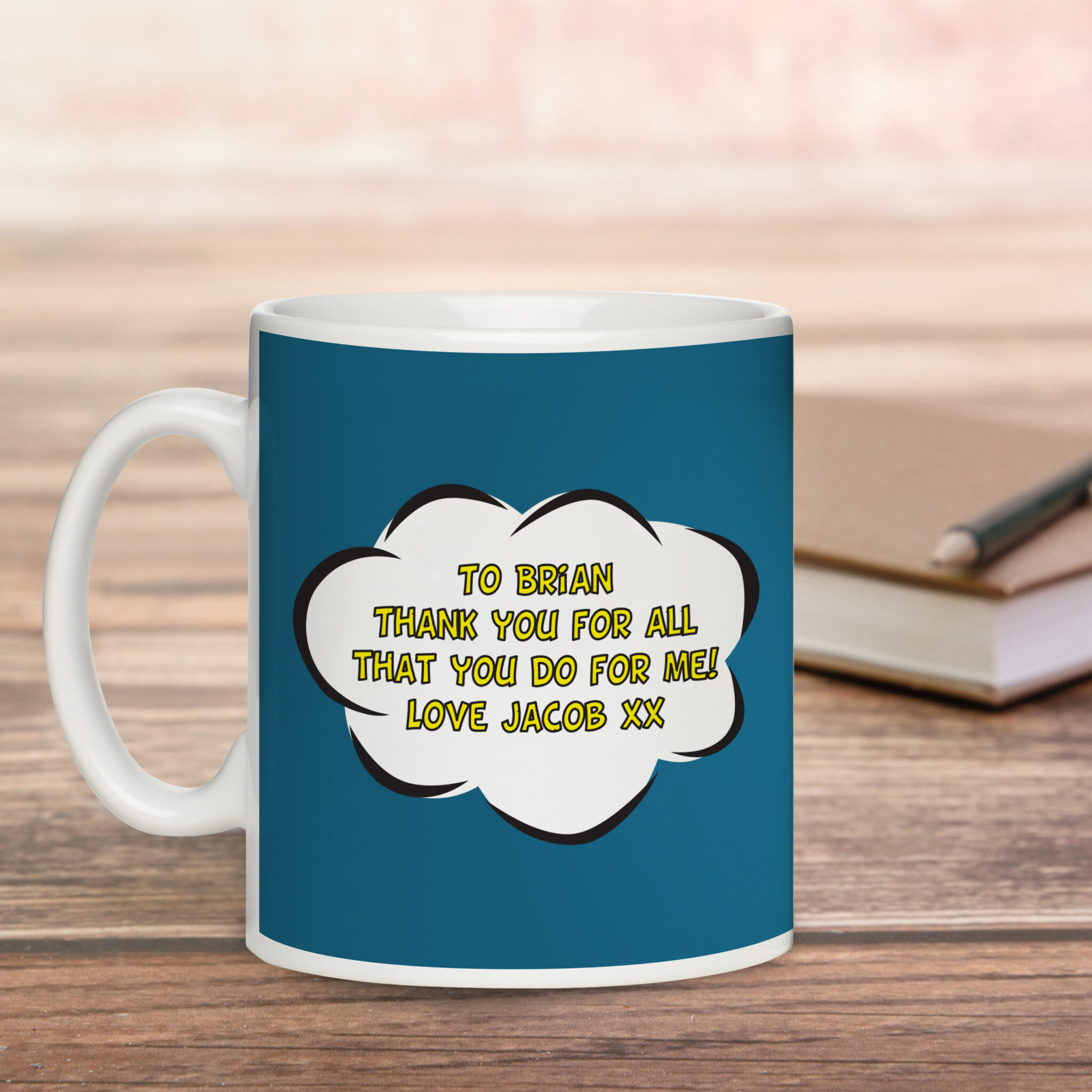Show your Step-Dad how much he means to you with this super hero themed mug. Add a touch of personalisation with a short message on the back of the mug.