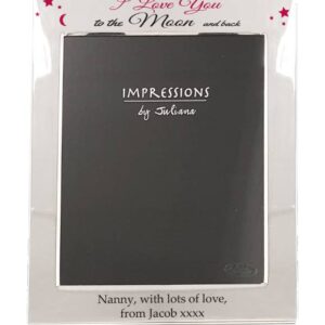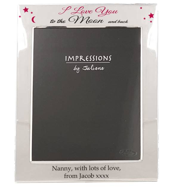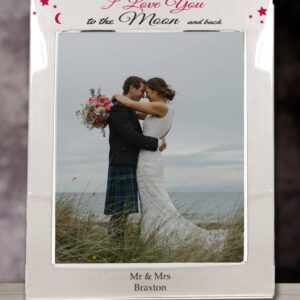 A 5×7 silver plated photo frame gorgeous and anti-tarnish featuring our To The Moon & Back design and your own personal message