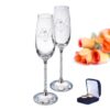 These gorgeous flutes make the perfect gift for any special occasion. We will engrave your unique message, below our vintage heart design, over 2 lines of 25 characters including spaces on both glasses. The stem is filled with crystals and presented in a black gift box. Each glass is 24cm tall and 6cm diameter.