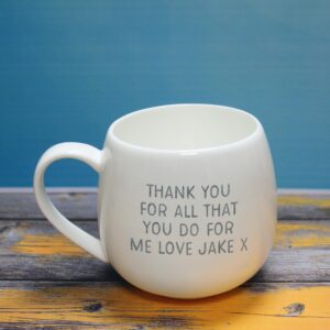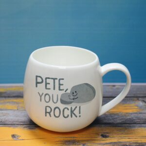 Personalise this lovely bone china mug with any name of up to 15 characters, this will appear on the front before the fixed text ‘You Rock’. Add a special message to the reverse of the mug over 4 lines of 20 characters. Dish washer & microwave safe. Dimensions: 8.7 x 7.6 x 2.7cm.